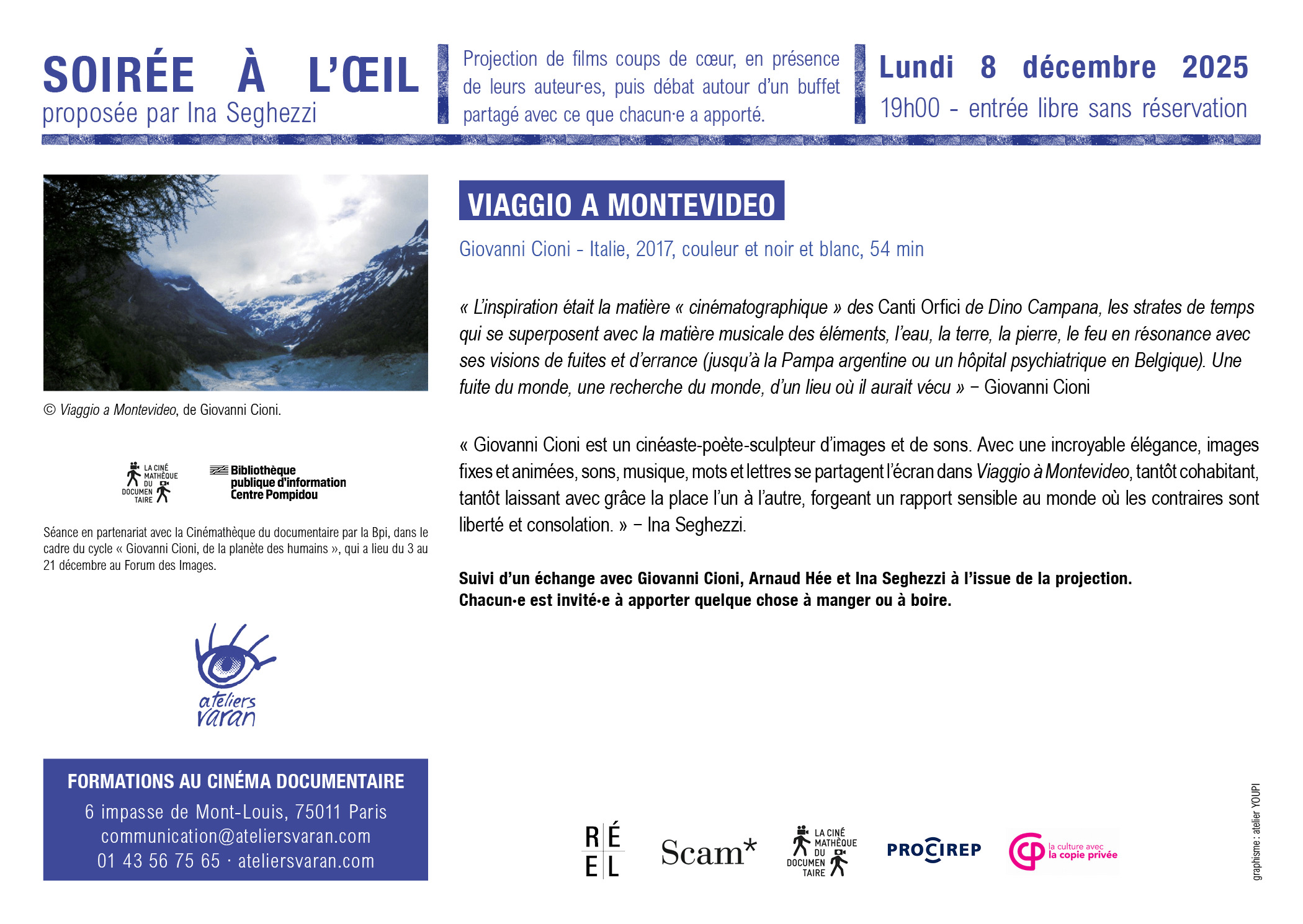 Rendez-vous lundi 8 décembre 2025 à 19h aux Ateliers Varan