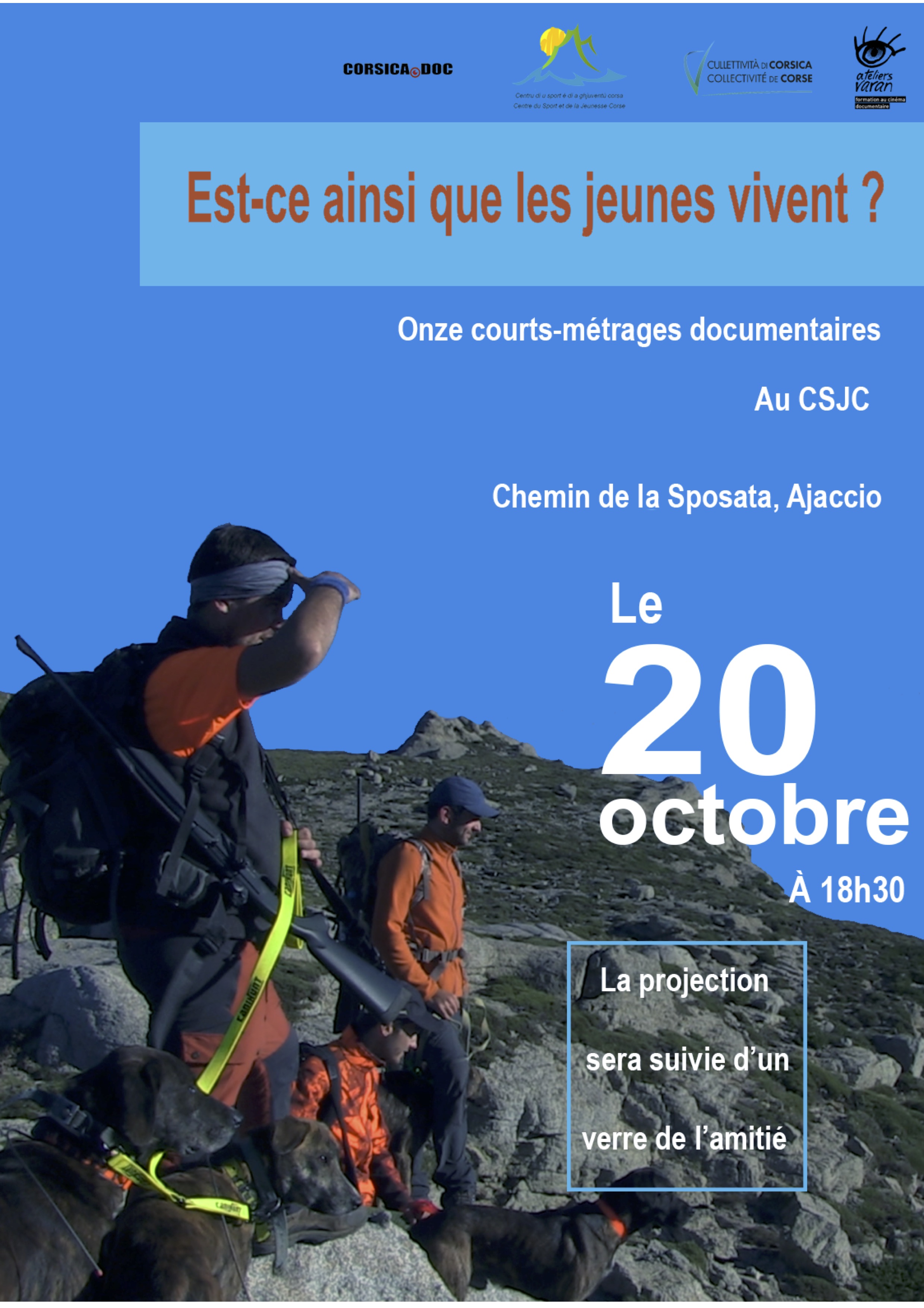Le projection des films réalisés durant l'atelier de réalisation à Ajaccio aura lieu le samedi 20 octobre, à partir de 18h30, au CSJC.