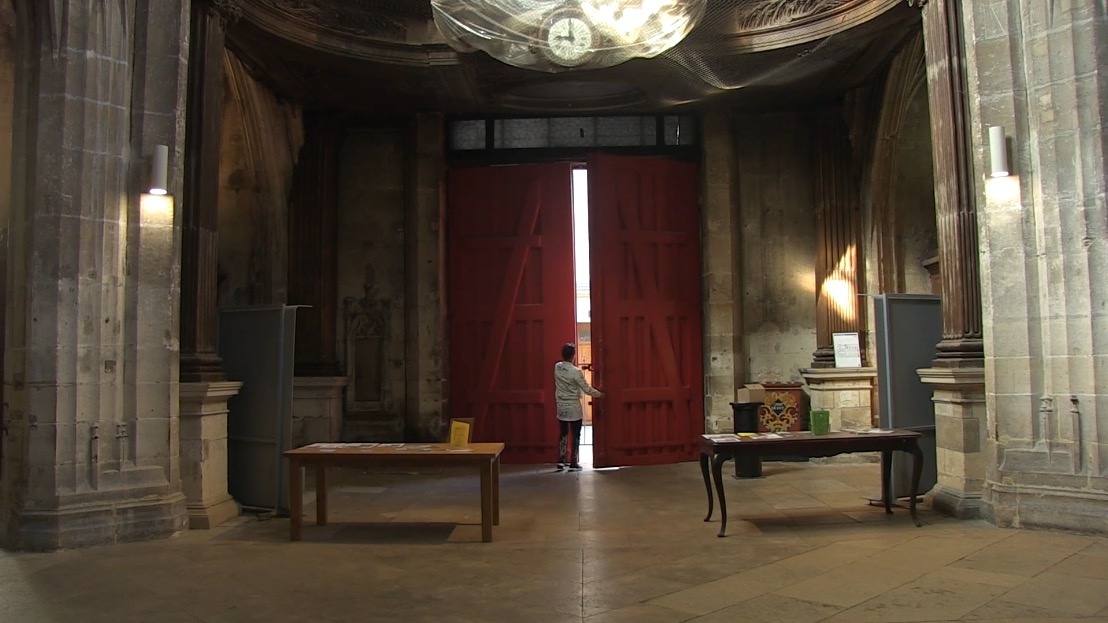 Un microcosme dans un décor d’église gothique. On y rencontre un sacristain berbère, du brouillard, des Chinois, un homme en costume rose, des osties, de la musique étrange, et même du cinéma.