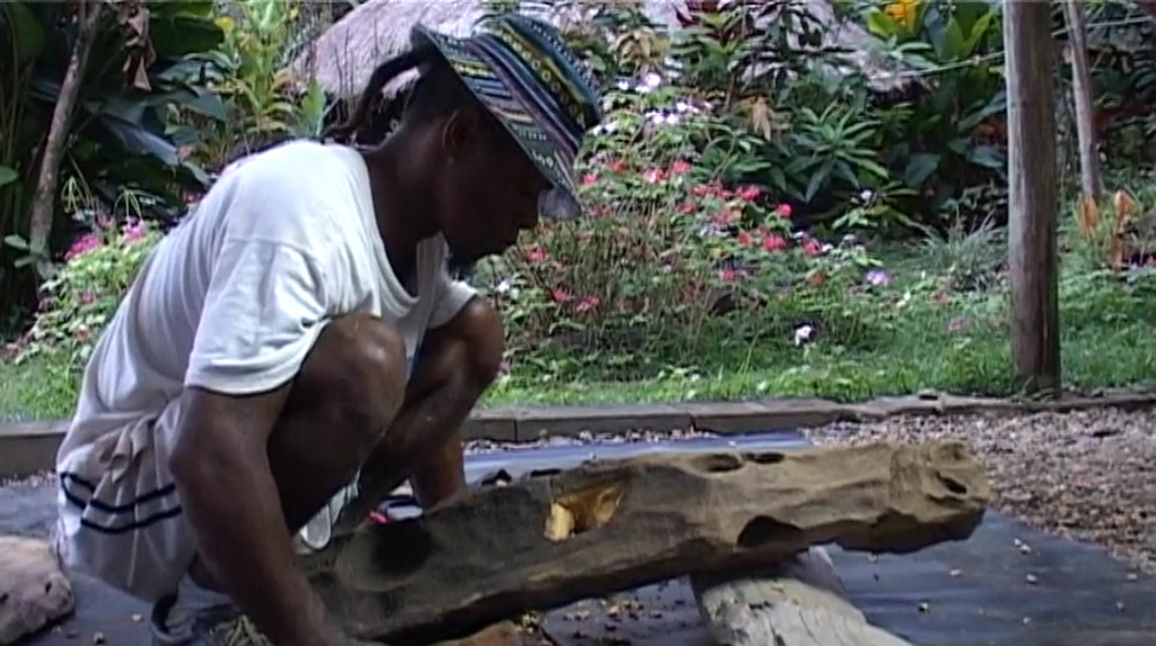 De la plage où le bois vient s’échouer à son atelier nocturne, Ceû, sculpteur de la tribu de Tieti à Poindimié nous révèle la dimension sacrée du bois.